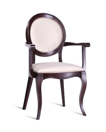 Modern dining armchair in classic design with wooden armrests. The natural wooden frame is a perfect fit for any interior.